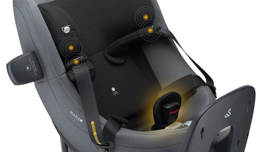 Marie 5 is the next generation of our 360˚ rotating seat. We’ve taken everything you loved about Marie 3 and made it even better, focusing on enhancing user experience, superior safety, and increased comfort. It’s a little haven for your precious passengers. Named after the remarkable Marie Curie, the latest edition continues our tradition of intuitive user experience coupled with features that are designed to make your life easier.